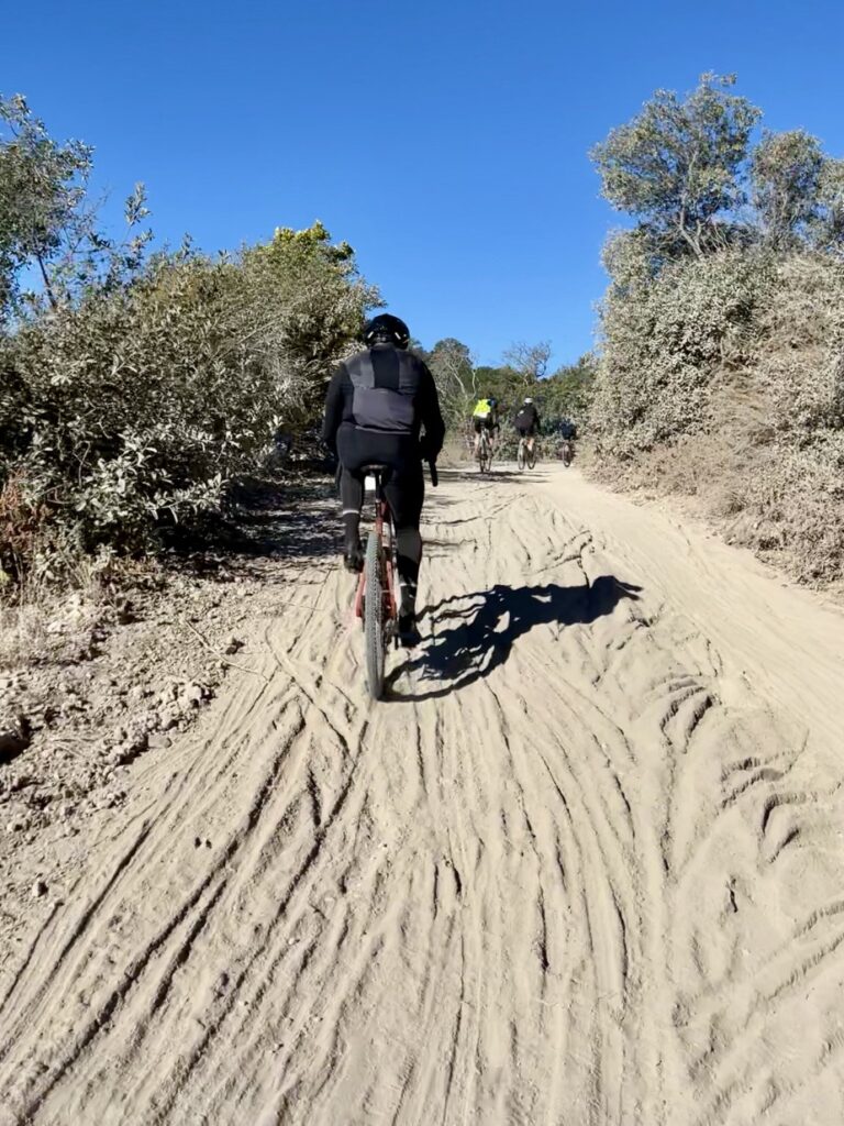 Back in the Town Green, Bremmentown playing Pixies “Where is my mind” a soundtrack for sipping a Firestone Pivo and reflecting on the experience. The fun vibes and the diverse surfaces are most memorable; from wide-open fast fine-pack to weedy grapevine tractor paths, a baby-powder slot canyon, rolling country farm roads, smooth-packed flowing singletrack, an active rock quarry, that scramble up the chunky baby-heads hiking trail, loose gravelly washerboard… This Bovine packed in a lot. Hard at times, but mostly fun.