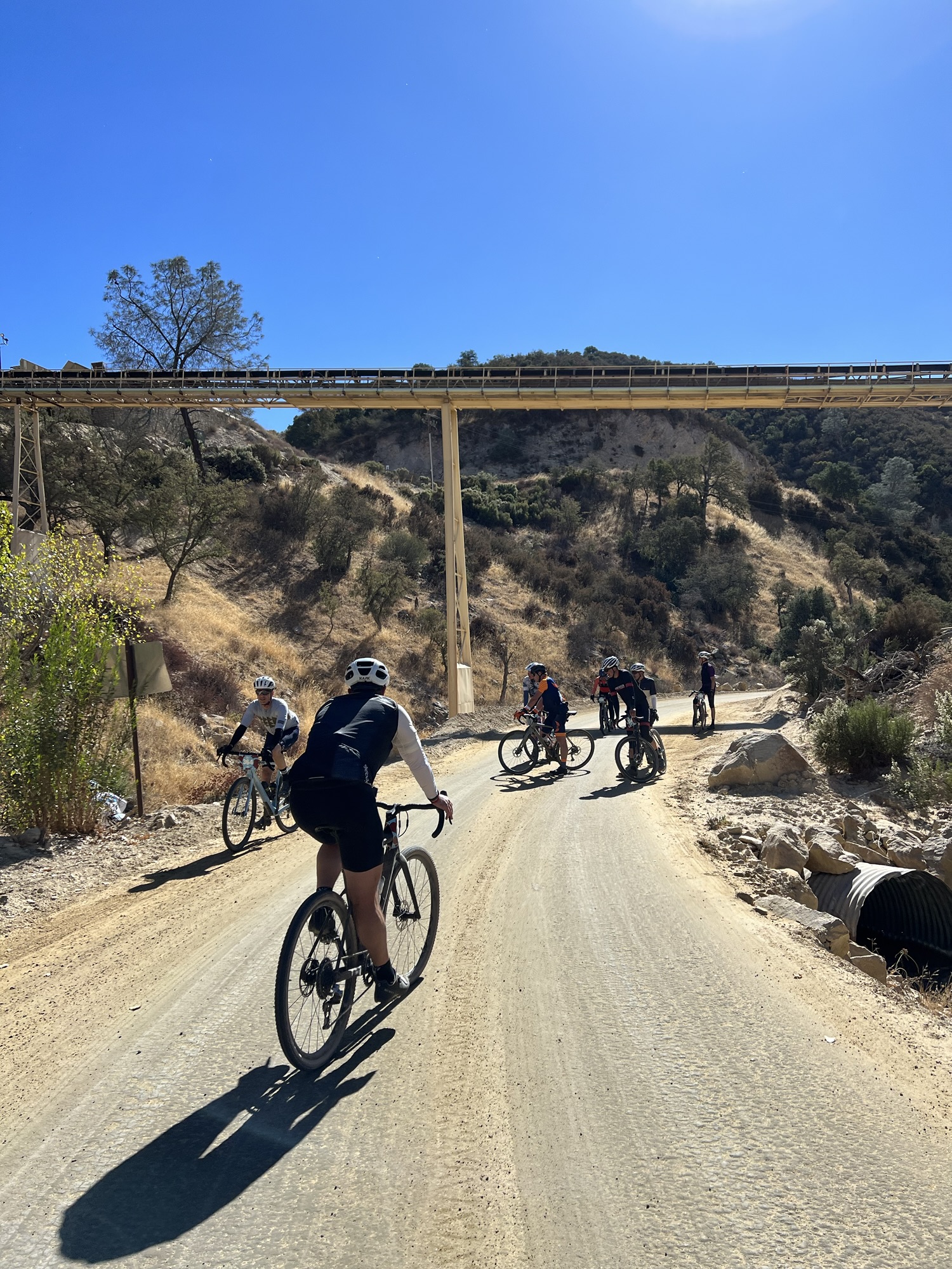 We found where they make the gravel!Back across the valley and into the second loop we find ourselves riding through an active rock quarry. Huge piles of rock, fed by a maze of overhead conveyers, loaded by meandering tractors and trucks… Super cool, but also distracting. Lots of confusion amongst our few dozen riders looking for a key (unmarked) route junction which dipped off the quarry road and across a small creekbed. What followed was hilarious and technically challenging… a segment of flowing single-track pitched up into a single-file scramble up a narrow, deeply-rocky hiking trail.