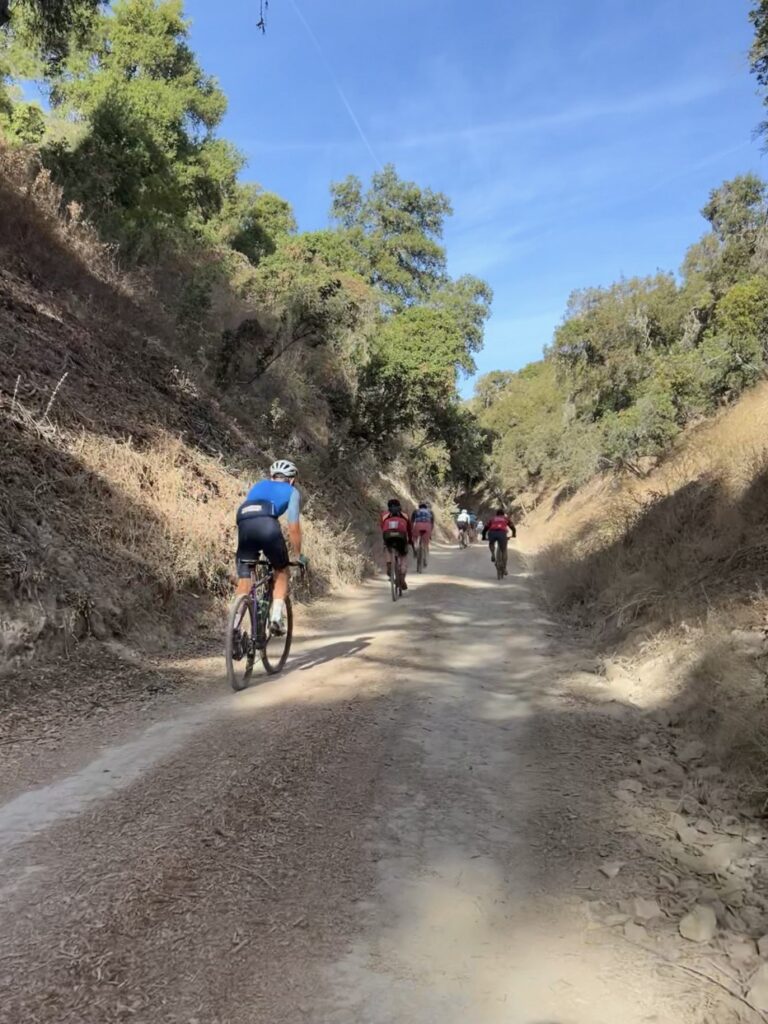 The new Santa Rita Ranch loop was cool and interesting and technically challenging, packing 1000′ of 20% loose granny-gear grind into just a few miles. Reminded me a lot of what we ride out here near Mt Diablo; everything is up, rough and steep. The bikes were not happy after hauling through multiple BB-deep creek crossings, creaking and squeaking as the chains dried out. Lovely out there tho, wriggling around just above the Pacific coast…